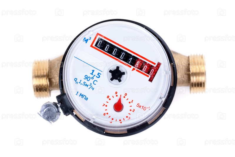 Новый счетчик воды на белом фоне