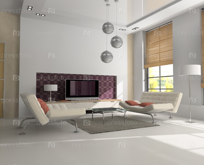 Интерьер комнаты с креслом и телевизором