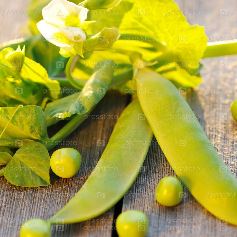 Стручки гороха на деревянном столе