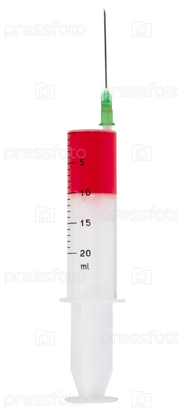 Шприц с кровью на белом фоне