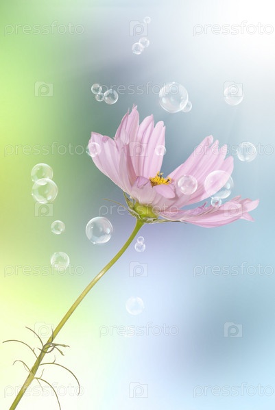 Декоративный розовый цветок на абстрактном голубом небесном фоне