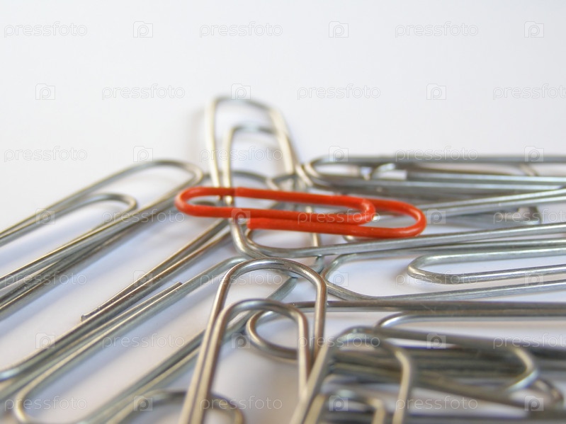 Красная скрепка среди серебристых