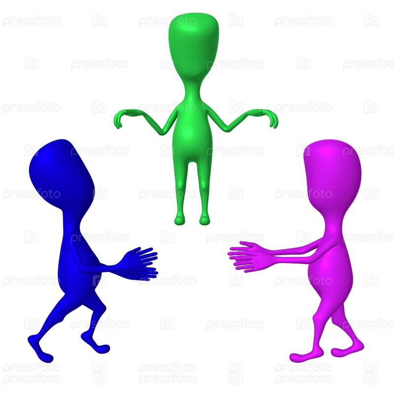 Две куклы с странной формы подбрасывают третью куклу