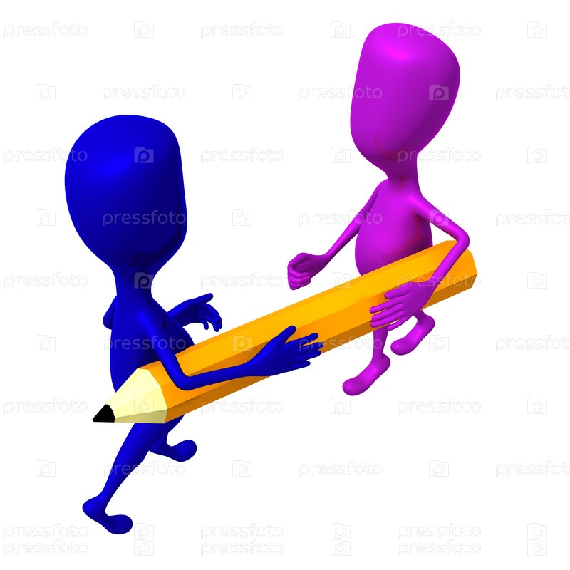 Две трехмерные куклы спорят за желтый карандаш