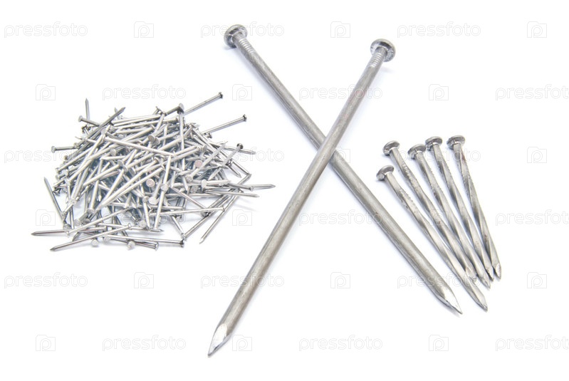 Различные гвозди на белом фоне