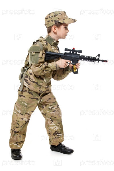 Молодой солдат с ружьем