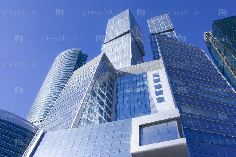 Современные небоскребы под голубым небом