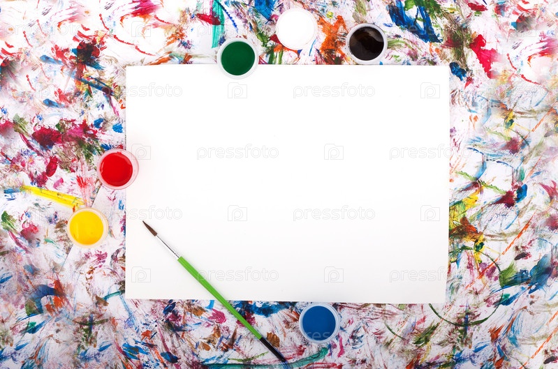 Лист бумаги и акварельные краски
