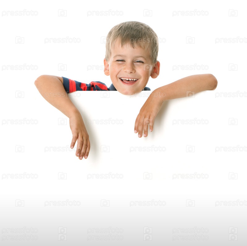 Мальчик держит пустой баннер