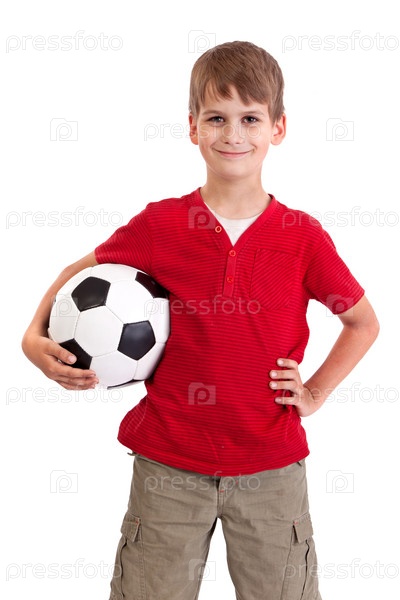 Милый мальчик держит футбольный мяч