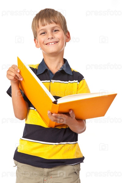 Школьник держит книгу
