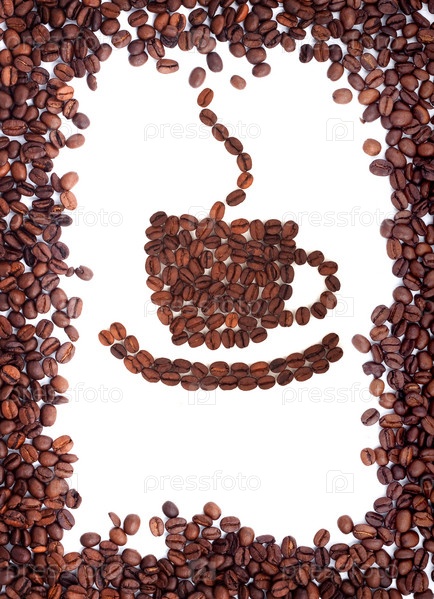 Чашка кофе из зерен на белом фоне