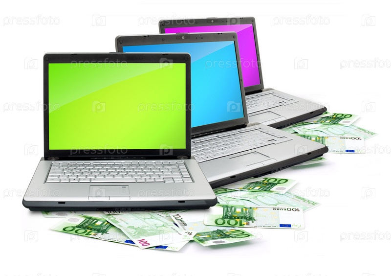 Открытые ноутбуки с деньгами