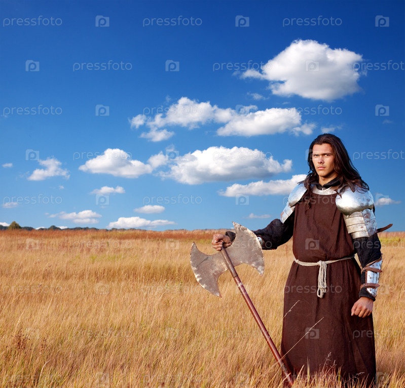 Средневековый рыцарь в поле с топором