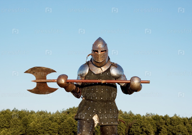 Средневековый рыцарь в поле с топором