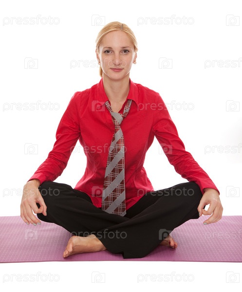 Молодая предпринимательница занимается йогой
