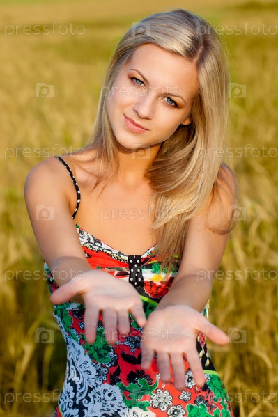 Женщина гуляет на пшеничном поле