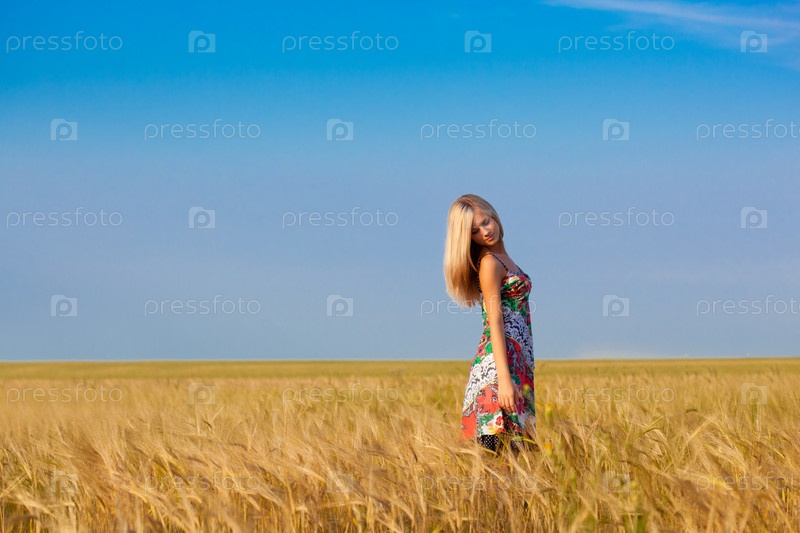 Женщина гуляет на пшеничном поле