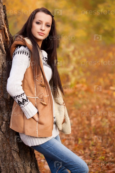 Красивая молодая женщина в осеннем парке