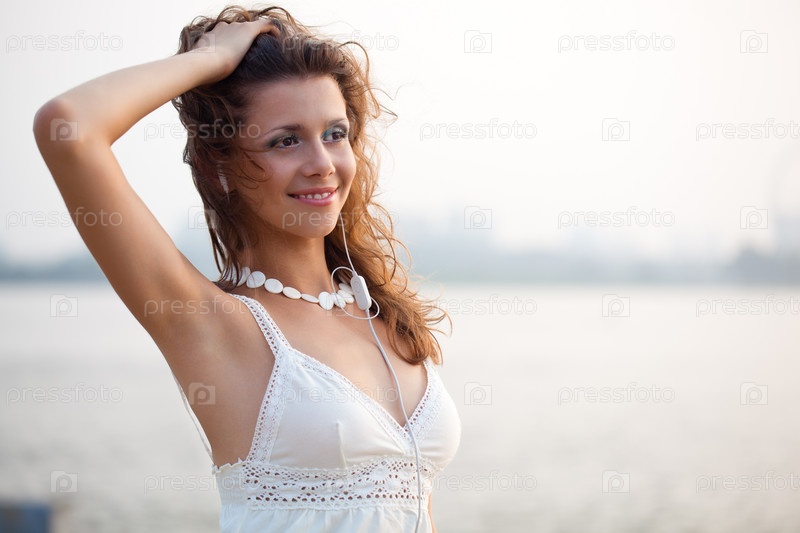 Счастливая женщина в наушниках