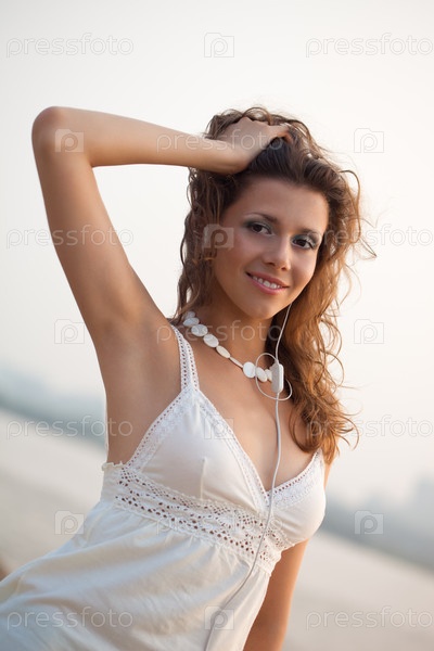 Улыбающаяся женщина в наушниках