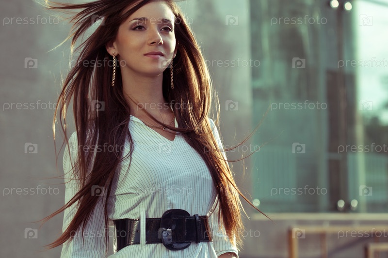 Женщина с развевающимися волосами