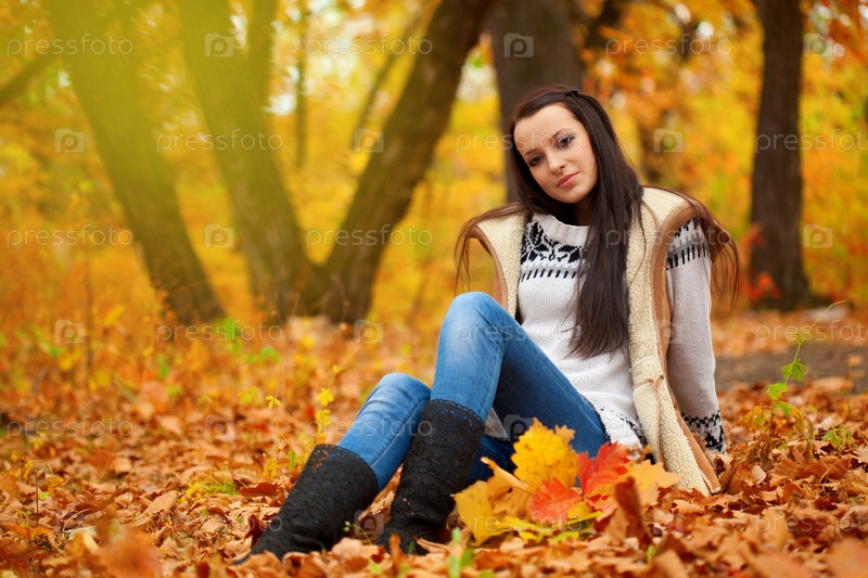Красивая молодая женщина в осеннем парке