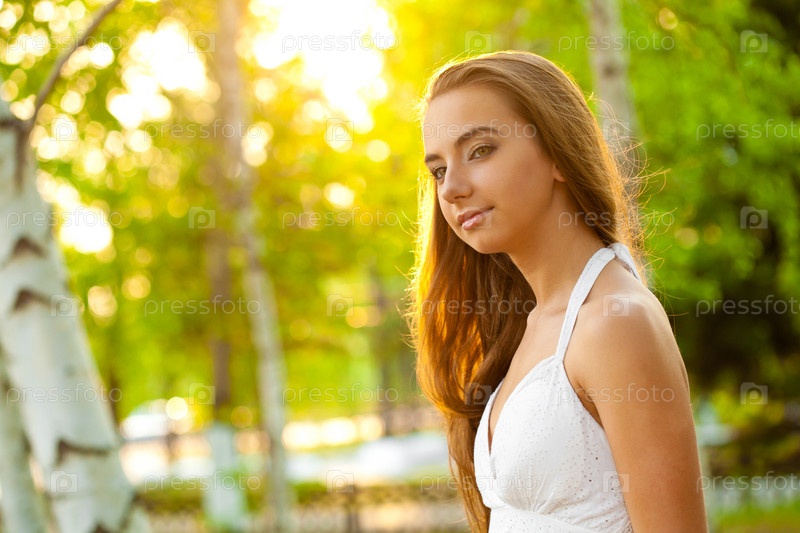 Красивая молодая женщина в парке летом