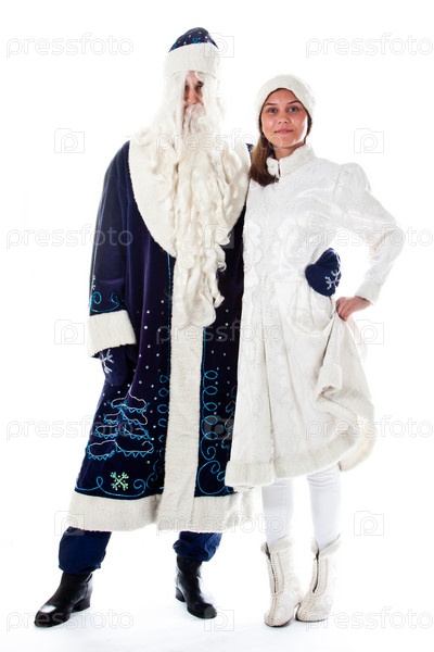 Дед мороз и снегурочка на белом фоне