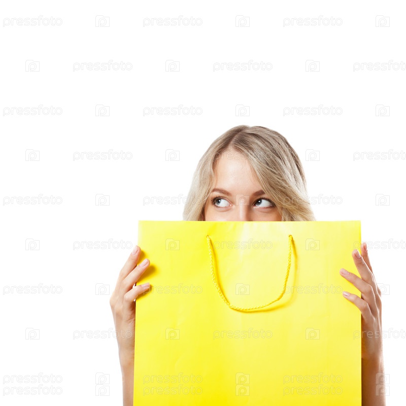 Блондинка с желтым пакетом