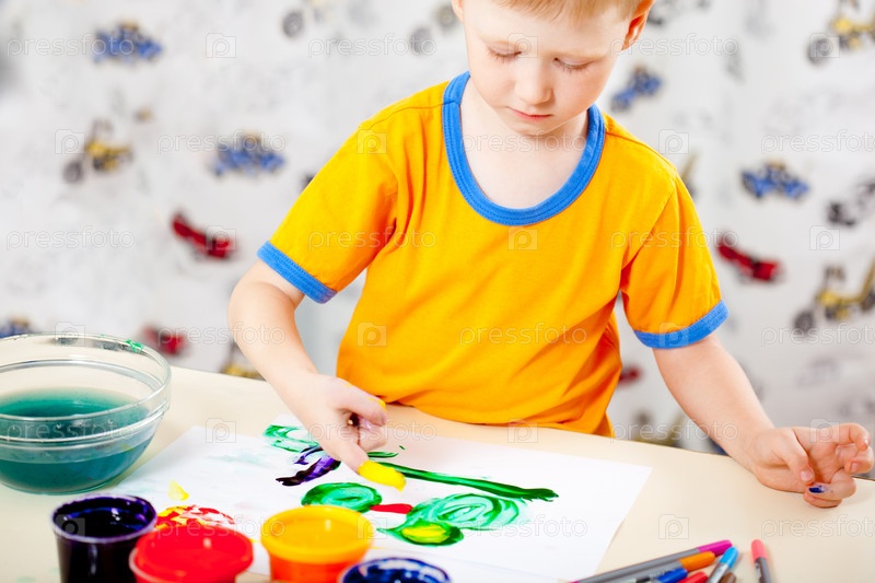 Мальчик рисует руками