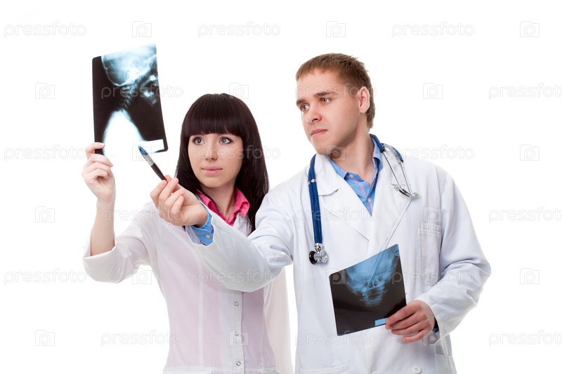 Мужчина и женщина врачи на белом фоне