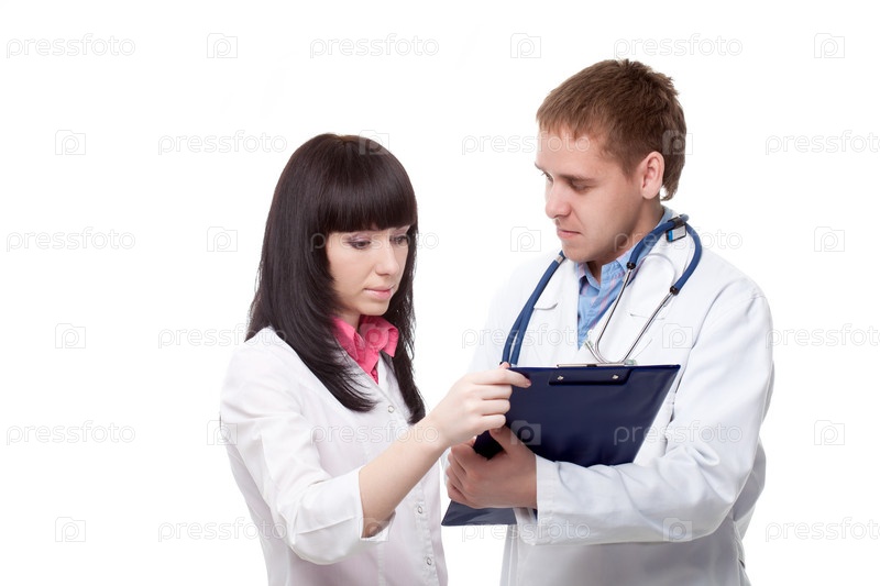 Мужчина и женщина врачи на белом фоне