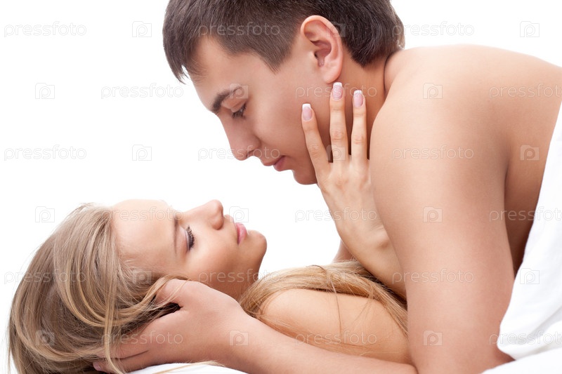 Пара лежит на белой кровати