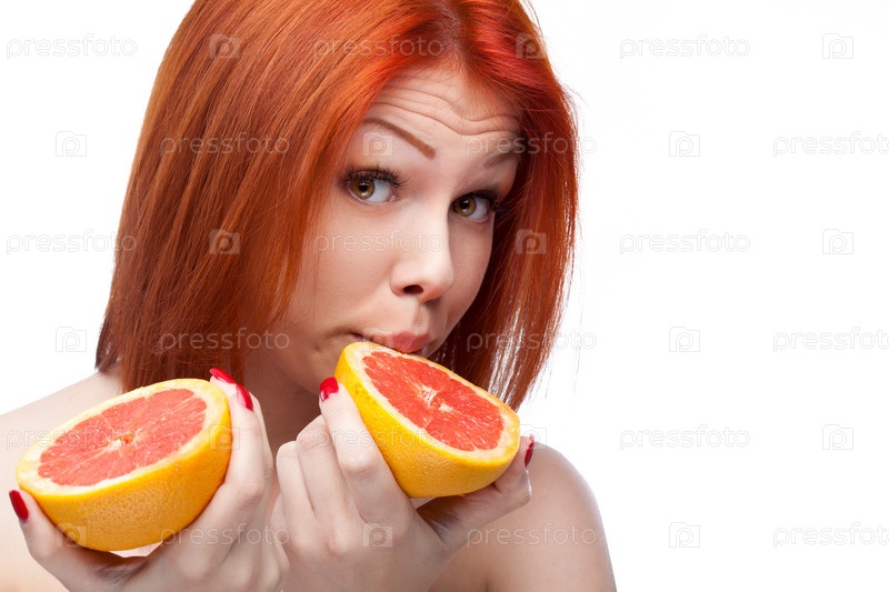 Рыжая женщина с грейпфрутом
