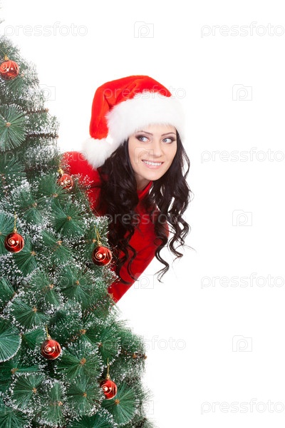 Женщина за новогодним деревом