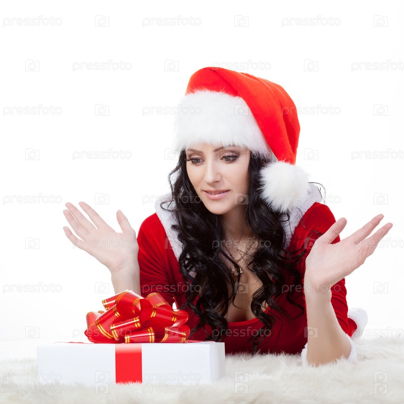 Женщина на полу с подарком