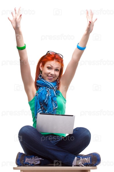 Счастливая девушка с ноутбуком