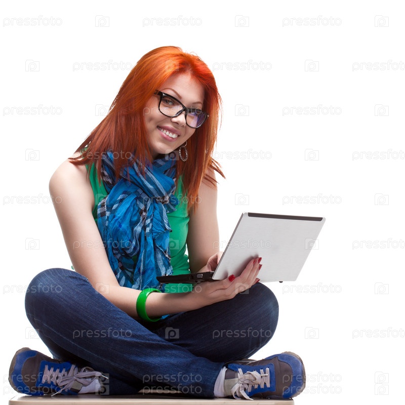 Счастливая девушка с ноутбуком