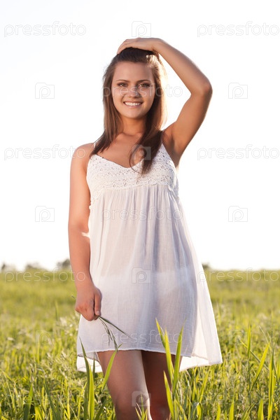 Женщина на зеленом поле
