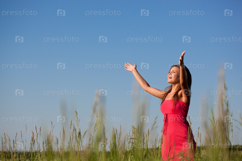 Счастливая женщина на поле