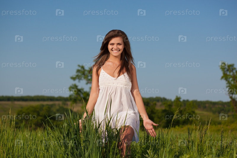 Женщина на зеленом поле