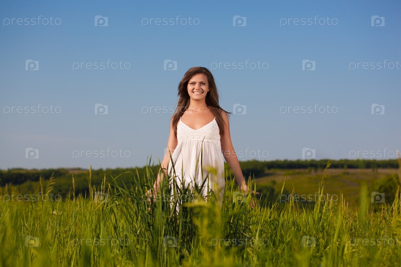 Женщина на зеленом поле