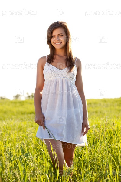 Женщина на зеленом поле
