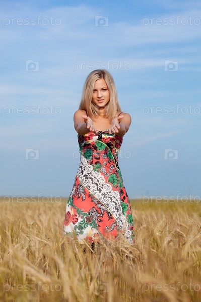 Женщина гуляет на пшеничном поле