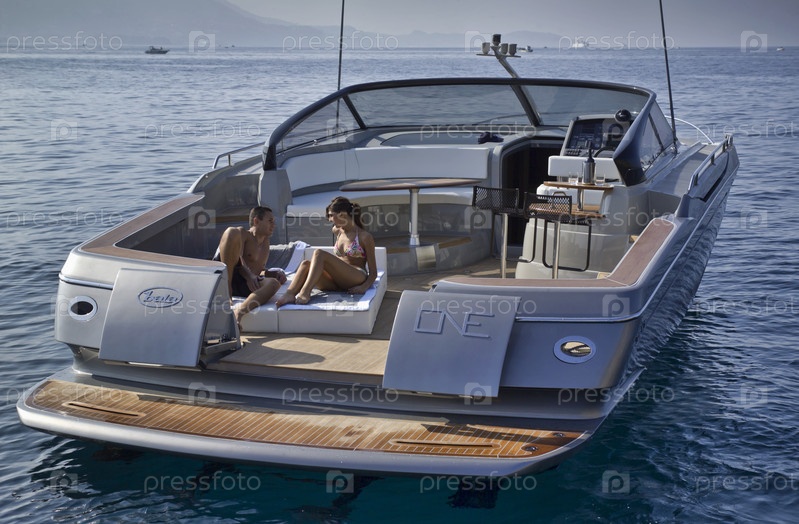 Италия, Байя (Неаполь), молодая пара отдыхает на борту роскошной яхты (верфь Кантьери ди Байа)