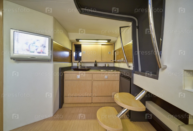 Италия, Байя (Неаполь), роскошная яхта (верфь Кантьери ди Байя), обеденная зона, кухня