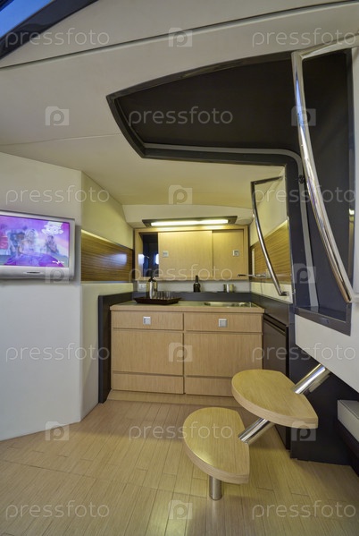 Италия, Байя (Неаполь), роскошная яхта (верфь Кантьери ди Байя), обеденная зона, кухня