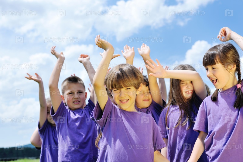 Группа счастливых детей на природе