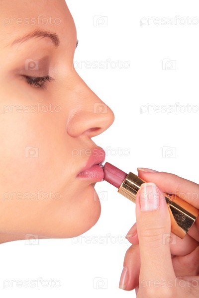 Девушка красит губы помадой
